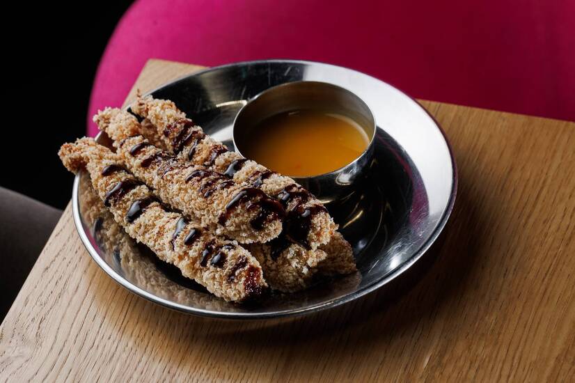 Соковиті креветки в хрусткій паніровці панко, обсмажені до золотистої скоринки. Легкі всередині та хрусткі зовні. Подаються з соусом манго-чілі