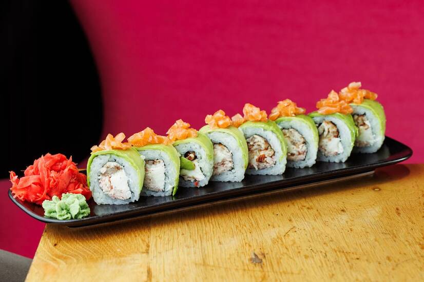 Рис, норі, крем-сир, вугор, сурімі, авокадо, лосось